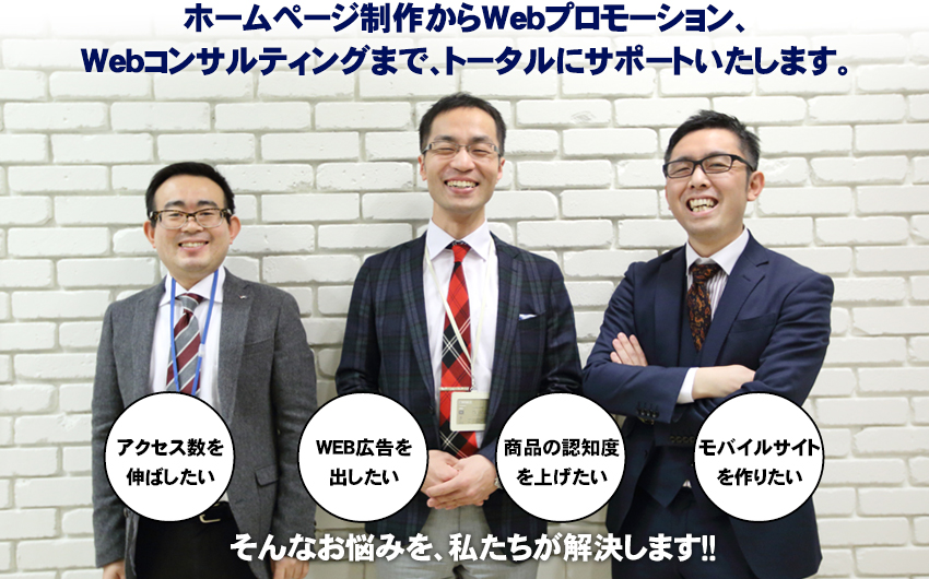 Yahoo!・GoogleからSNSまでお客様の業種、内容に合わせた効果的なWEBコンサルティングを行います。弊社独自のノウハウにより、初めての方から現在効果を実感されていない方までご納得頂けるプランをご提示・運用させて頂きます。